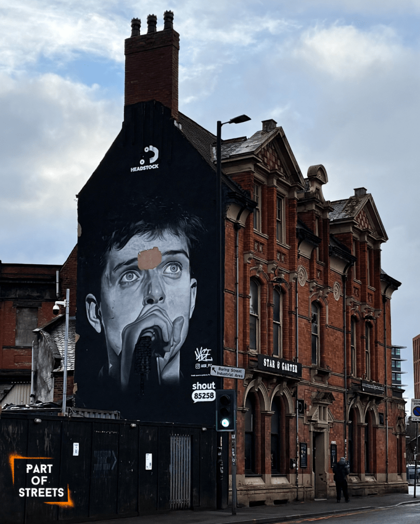 Two more streets ahead us. And two of the most recognisable murals in Manchester.