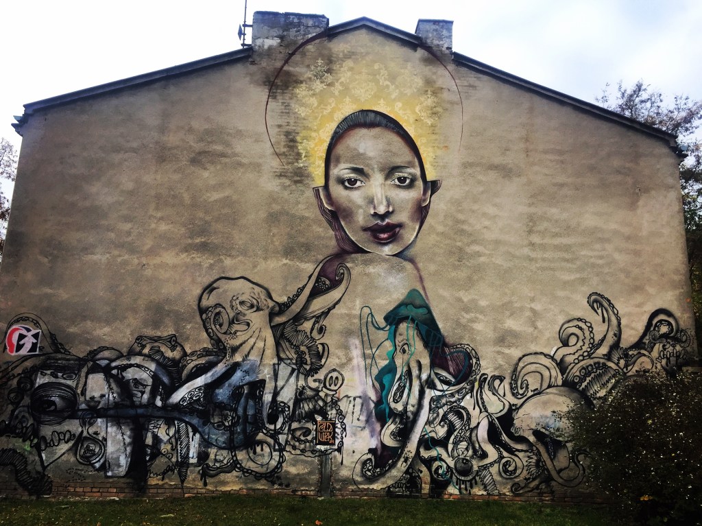 This is not a mural, but still – it’s a great work of (how he called himself on Instagram) an unknown street artist. The cross on the chest is a reference to the catholic culture which is typical for Częstochowa. Częstochowa is called Saint City because there is an important monastery for Catholics and also a lot of seminaries, or we can say now – just one seminary because of lack of enlistees.