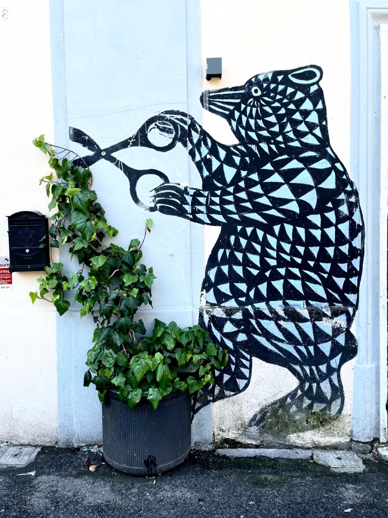 In Rome, you can find a lot of original, unexpected paintings, stickers, posters, and stencils. You won’t find everything on the Internet or guidebooks so you should trust your intuition, walk long distances and look around you. That’s how I came across this adorable plant trimming teddy bear.