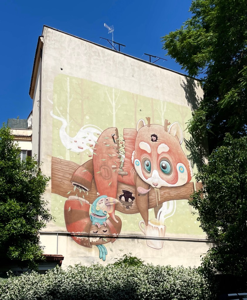 Watching Dulk’s work usually starts with the sentence “Awww, so cute…” and ends with embarrassment for how we let ourselves be fooled by appearances. Rome was no different. From a distance a cute red panda, up close a rather disturbing image of chicks being eaten.