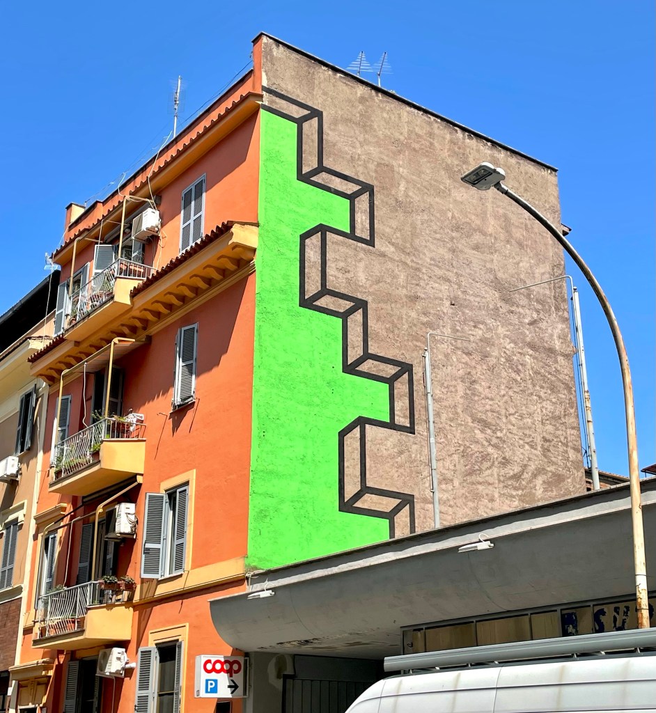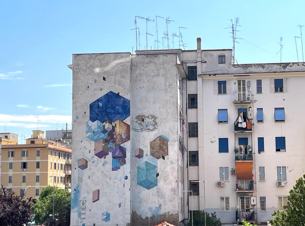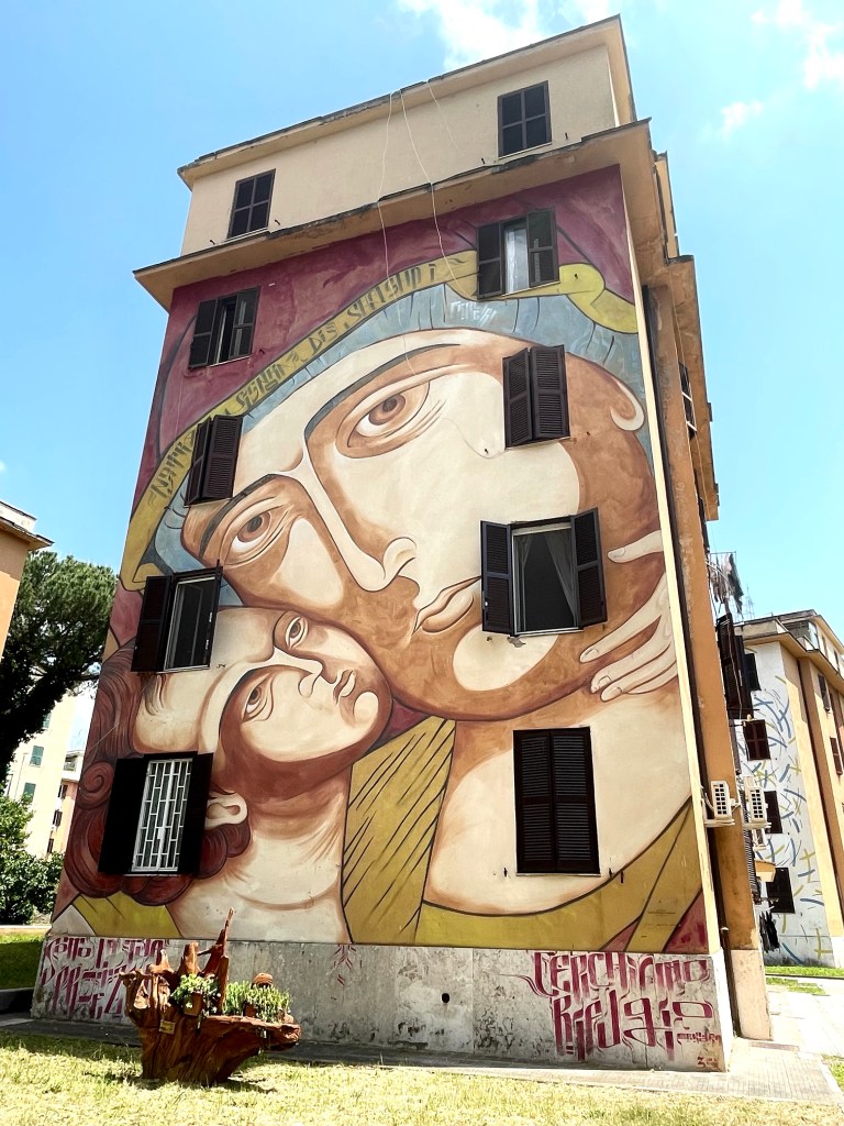 In the photo below you will see a painting on the former aeronautical barracks that has been occupied by 85 families from South America and North Africa. I highly recommend taking a look at Giulia’s blog, where she has put together a decent post about all of BLU’s Roman works.