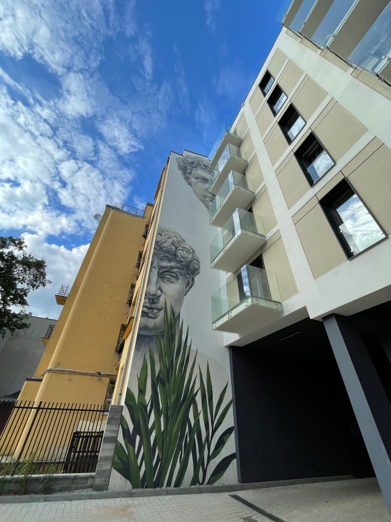 This courtyyard is not always easy to get into. Sometimes you have to wait a while and enter behind a nice resident. I assure you that it is worth it! Inside you will find two Michelangelo sculptures “David” and “Guliano de Medici” transferred to the wall. The mural was created by local artist Karolina Treler.