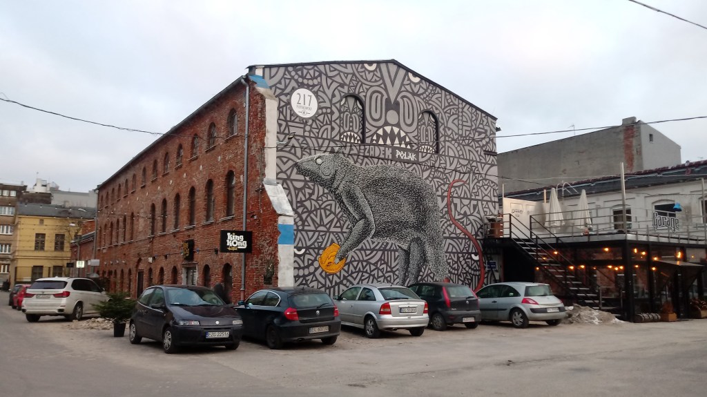 This backyard is the so-called second “OFF”. You’ll find great eateries here. From the original ones, I recommend Kuroneko – a Japanese home restaurant run by a Japanese lady. Besides food, there are entertainment venues, such as a roller skating rink or a venue called Przestrzen, where you can listen to alternative music. Of course, there is plenty of art too! You’ll find a lot of murals, for example, one that says good morning to you or one with a rat. 🙂