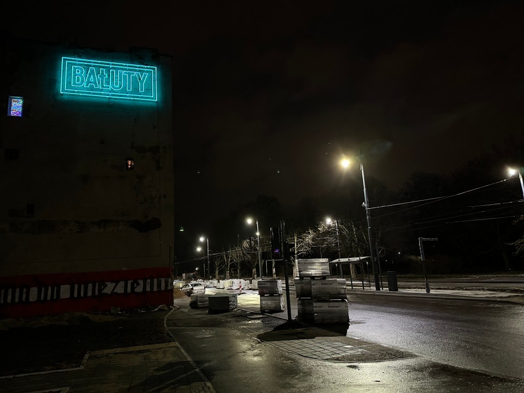 In addition to the paintings, there is a neon sign in Baluty designed by local artist Gouda. You can find it on the corner of Wojska Polskiego and Franciszkańska. The message is super simple even without knowledge of the Polish language, you will manage to understand. 🙂