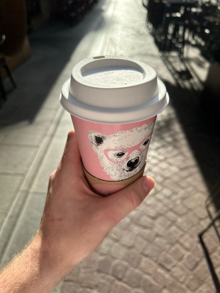 I like this place for several reasons. Even though it is on Piotrkowska Street, it is hidden in a courtyard, and you can take a chill pill there. There is a cat house next to the cafe’s door. It is the property of the cat Balbina. If you are lucky, she let you stroke her. I visit Przedza mainly in the summer because they have a lot of versions of tonic espresso. Kinie espresso, for example.