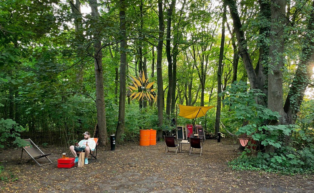 A place with coffee and beer in Poniatowski Park. In the summer, an ideal place to hide from the heat and city noise. From time to time techno parties happen here.