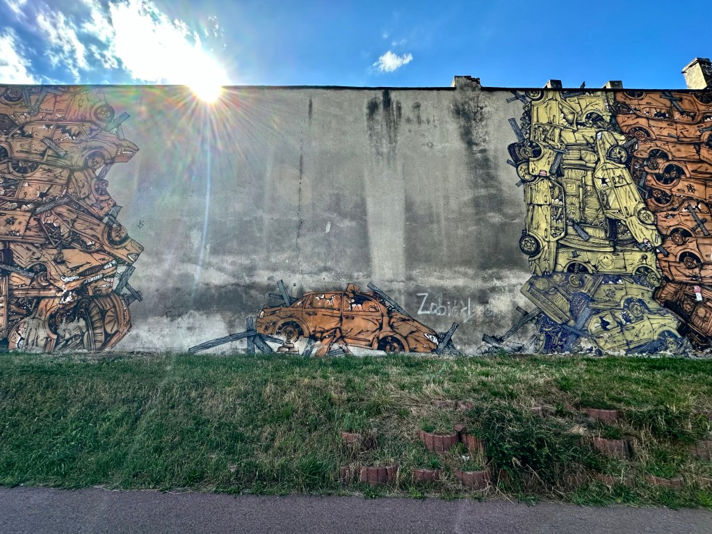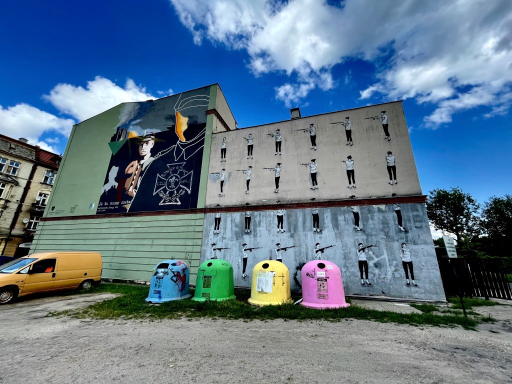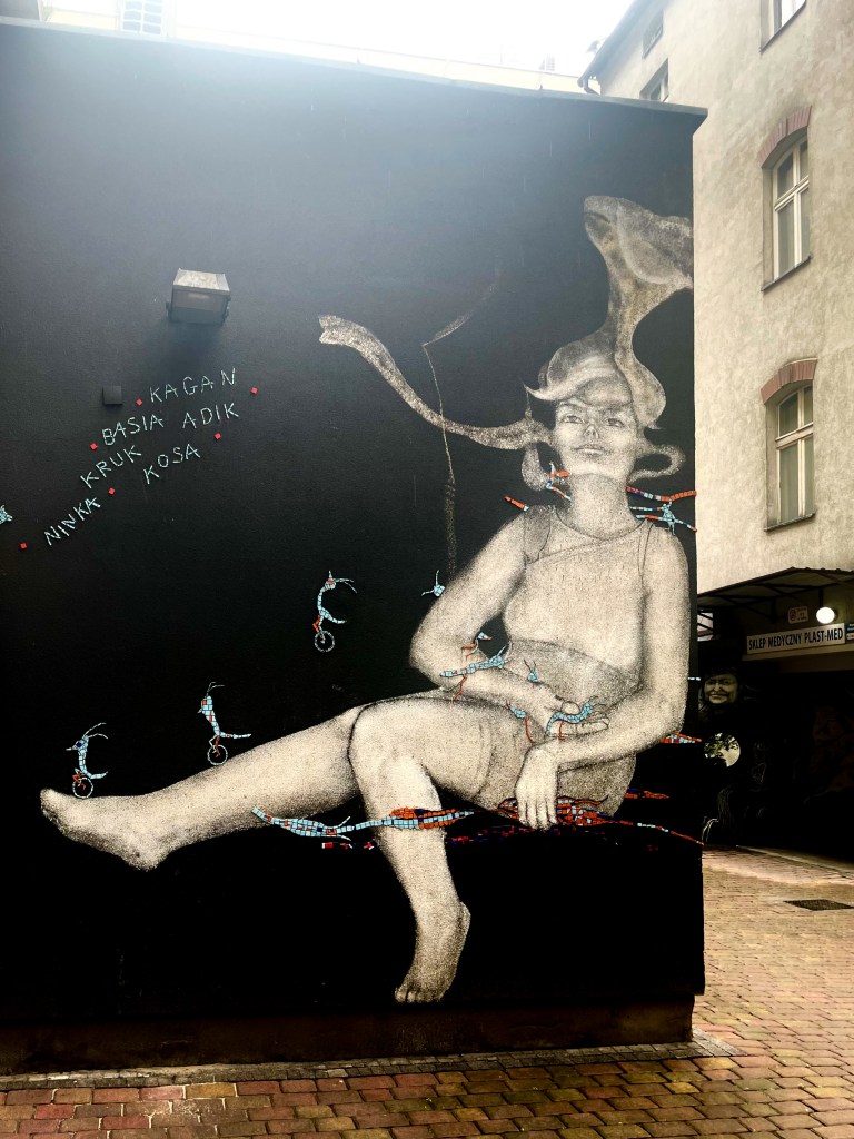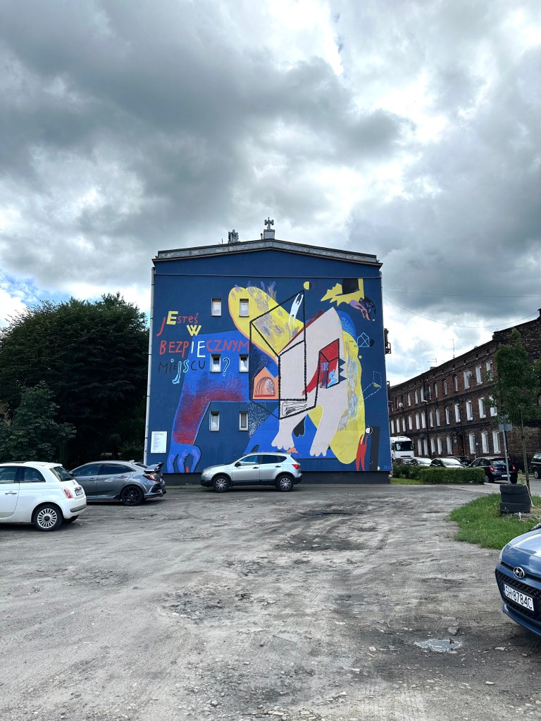 This mural was one on my “must-see” list. This artist, born in Argentina and then active in Valencia, created murals reflecting her thoughts and concerns. The mural was created in 2012 as part of the Katowice Street Art Festival.