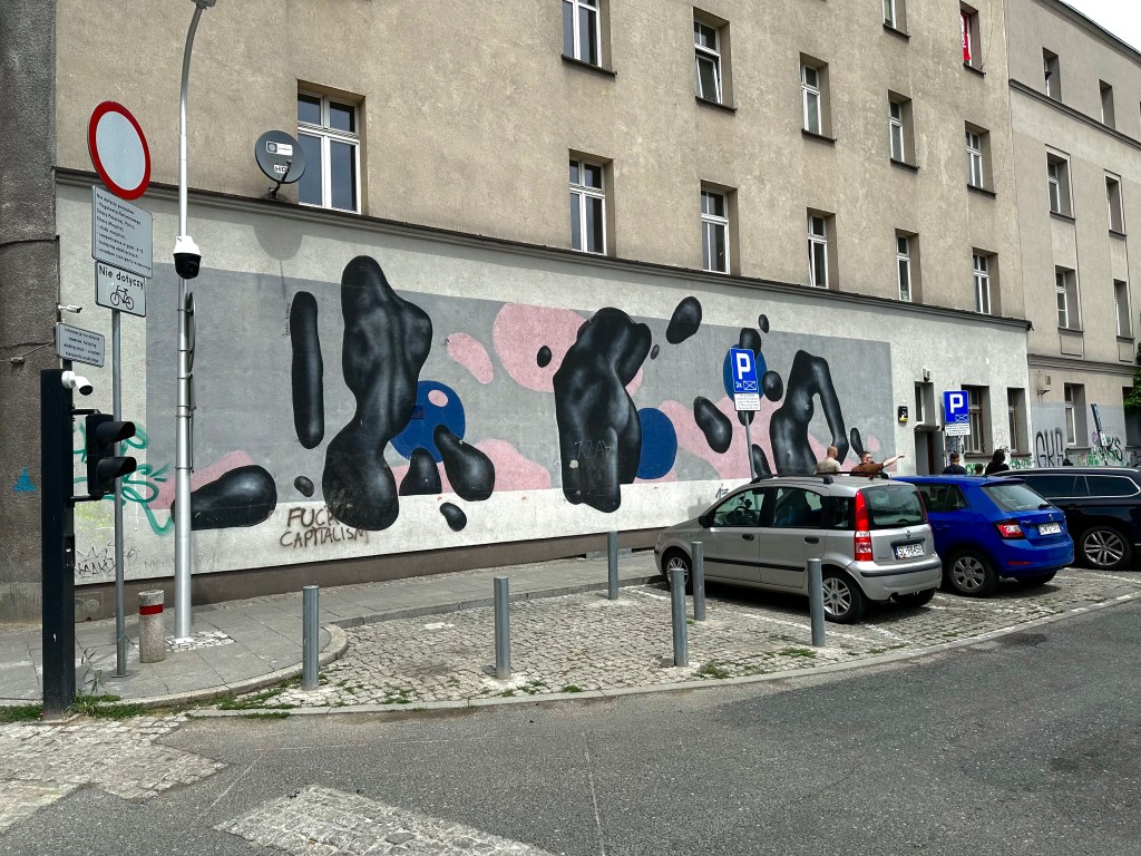 Not far from the mural, just across the street, you can find the work of Warsaw street artist Bart Sucharski.