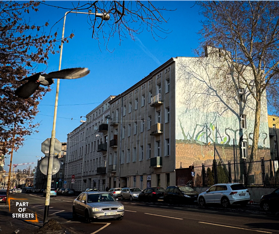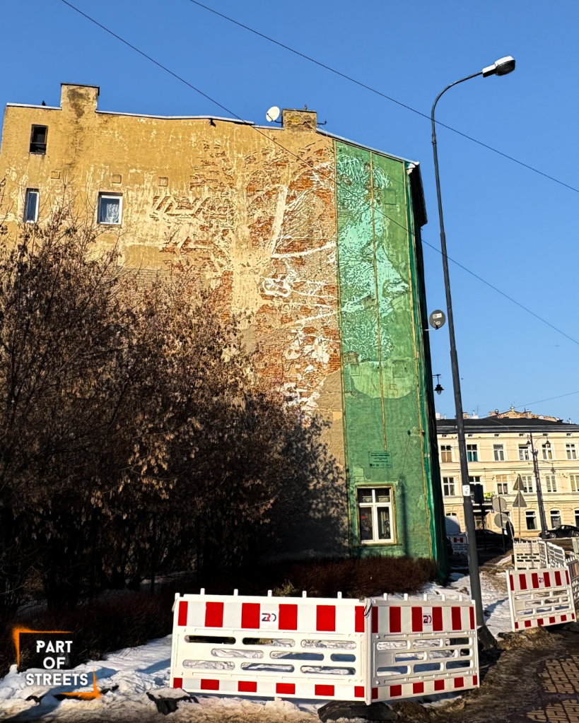 This street unfortunately became famous for reasons that weren’t very positive. But that’s all behind us, and now you can calmly admire one of the most original murals in Łódź. However, you should hurry with it, as the building is currently (January’26) under renovation. :<