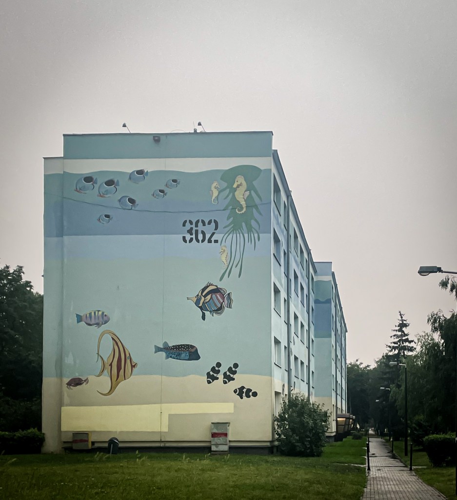 Well, in Retkinia you’ll also find what I like I to call ‘decorations – a few murals by the same artist, all in a very similar style. Nothing too wild, so mild colours, calm vibes, and a safe choice for the neighbourhood and artists too.